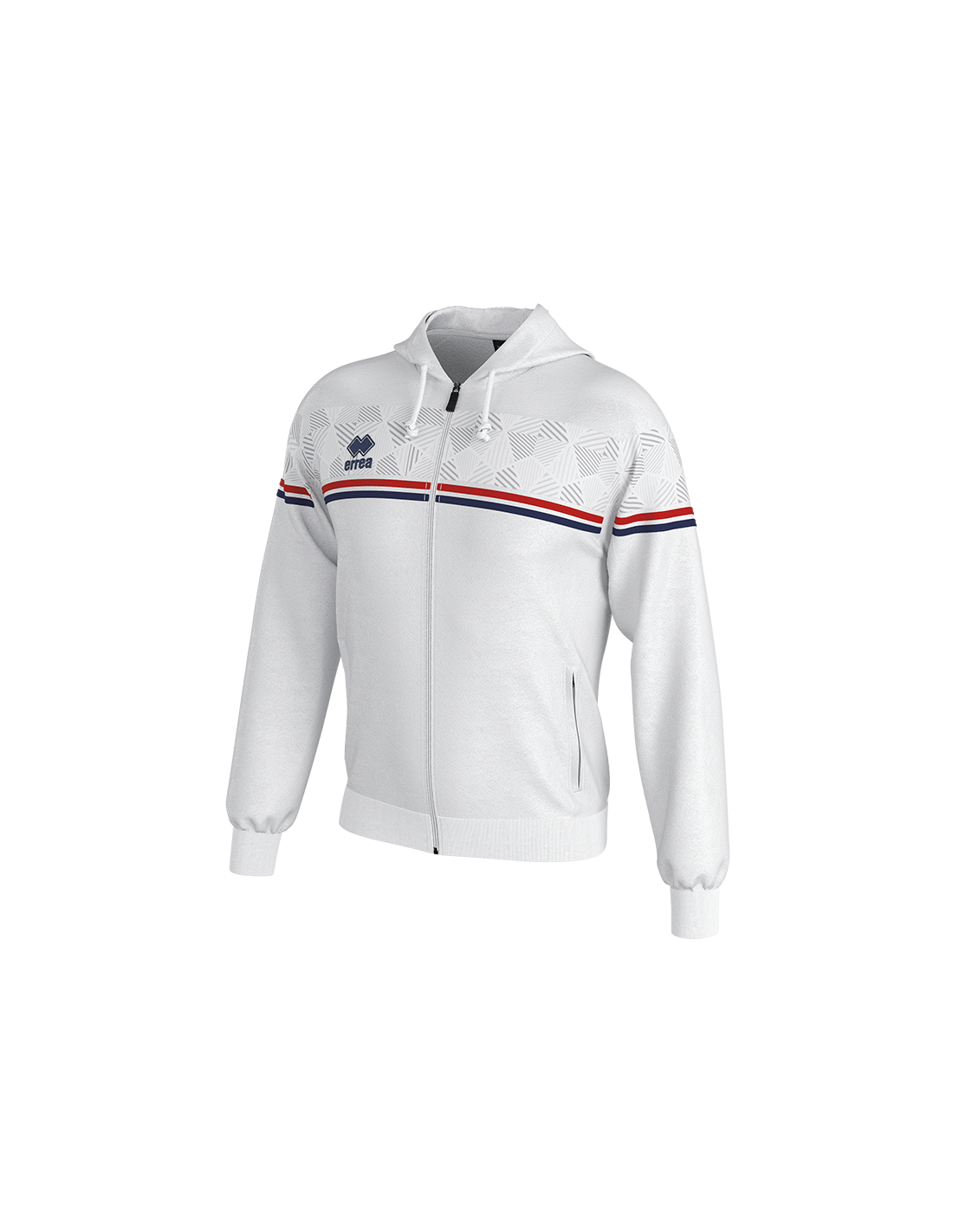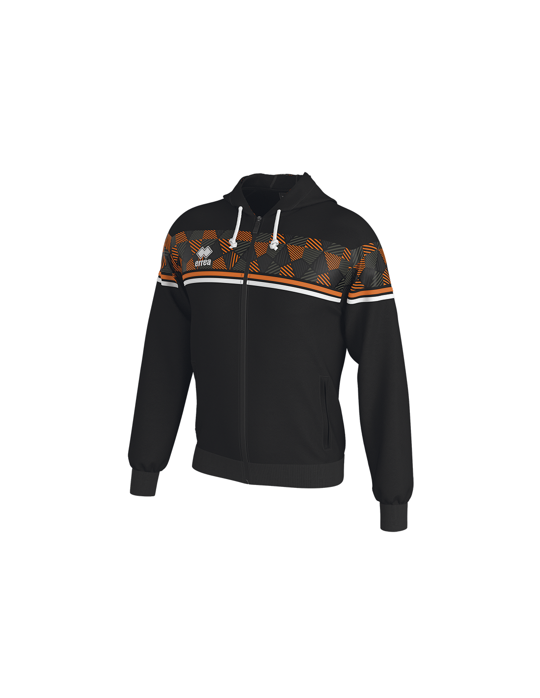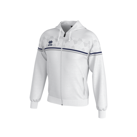 - Inserción por transfer, cremallera completa y capucha ajustable con cordón, puños y bajo de canalé elástico, bolsillos laterales, ribete en contraste